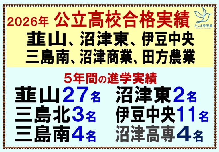 韮山・沼津東・三島北・伊豆中央を目指す中学生必見!