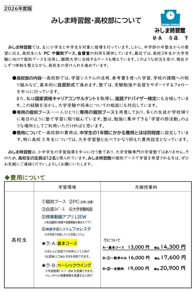 ■ みしま時習館の高校部について