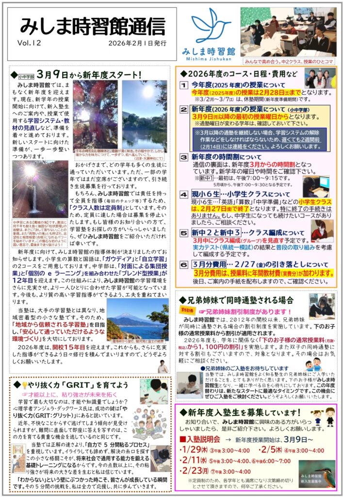 みしま時習館通信(2026年2月号)