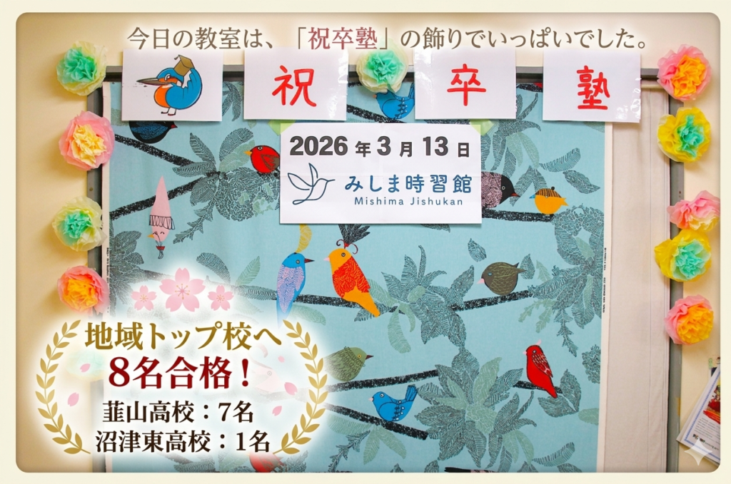 本日、静岡県公立高校の合格発表が行われました。 当塾「みしま時習館」からも、嬉しい報告が続々と届いています。